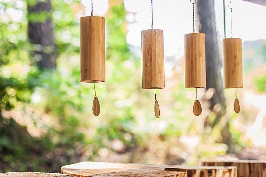 Koshi Heavenly Bells ... The smooth and harmonizing sounds and touches of these masterful instruments are immensely rewarding and impressive. Combined with 4 types of sounds and tunings (earth, water, fire, air) the effects are very uplifting and therapeutic. Their body is made of thin bamboo and inside are precisely tuned notes with an exceptionally rich resonance. You can hold them in your hand and play them, you can hang them up and it is also possible to play in a group on several bells at once and enjoy the harmonizing resonances.